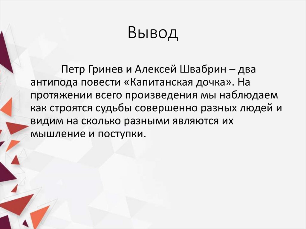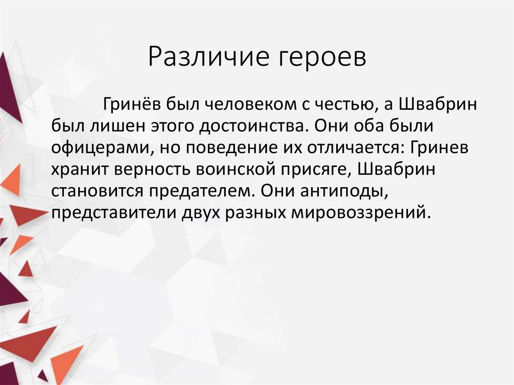 Противостояние Петра Гринева и АлексеяШвабрина – это противостояние верности и