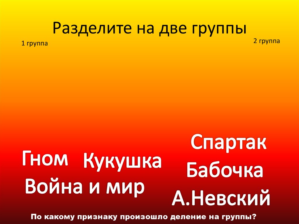 Разделите на две группы1 группа