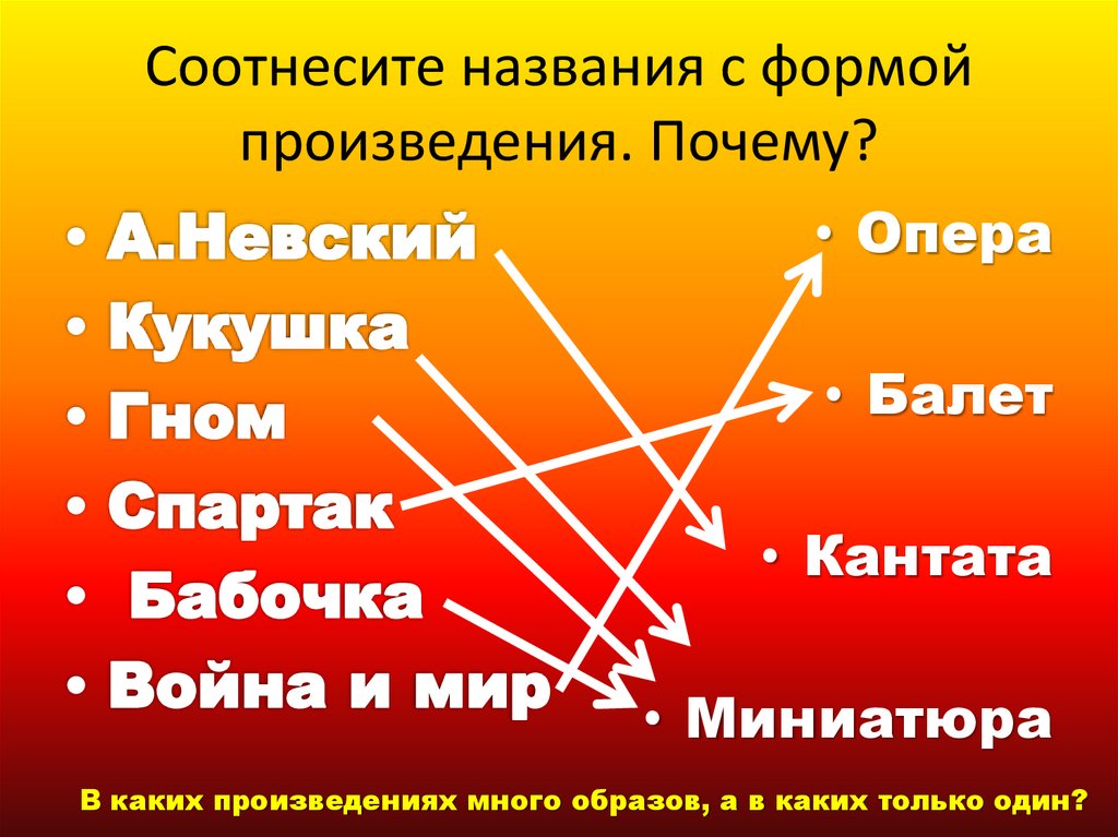 Соотнесите названия с формойпроизведения. Почему?