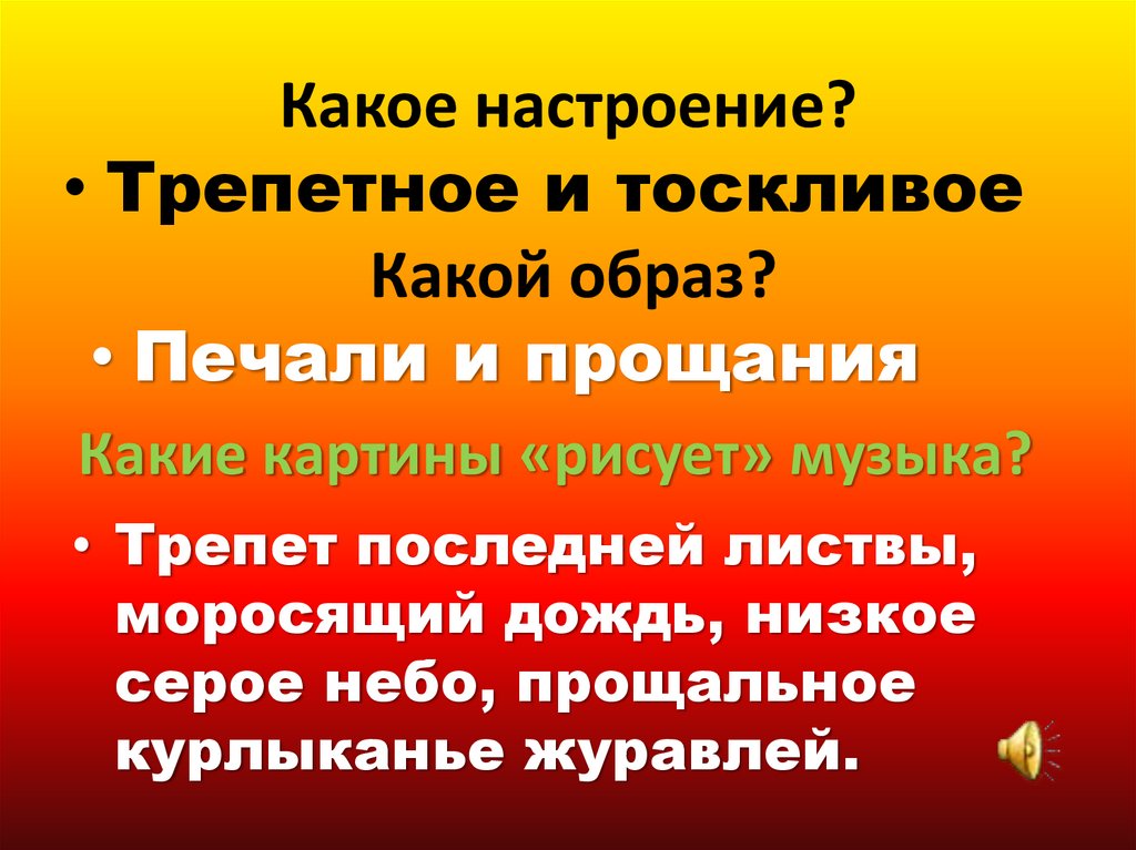 Какое настроение?• Трепетное и тоскливое