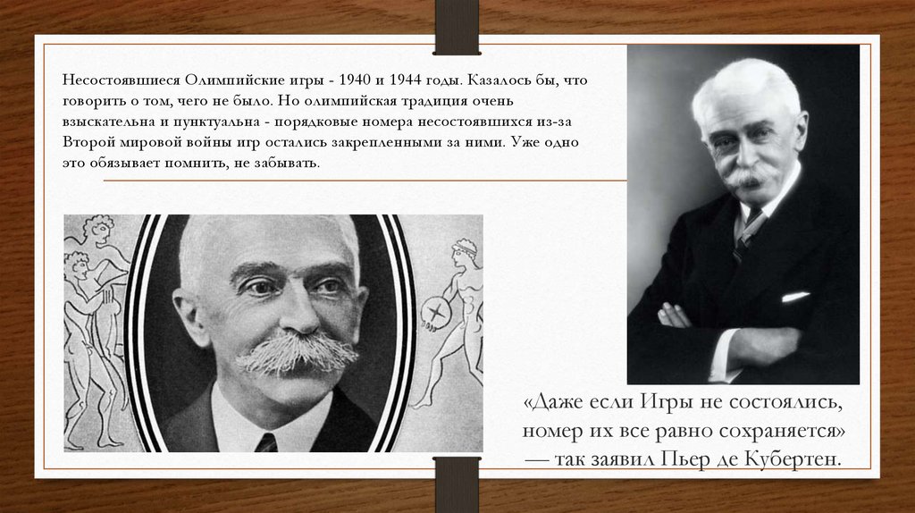 Несостоявшиеся Олимпийские игры - 1940 и 1944 годы. Казалось бы, чтоговорить о том, чего не было. Но олимпийская традиция очень