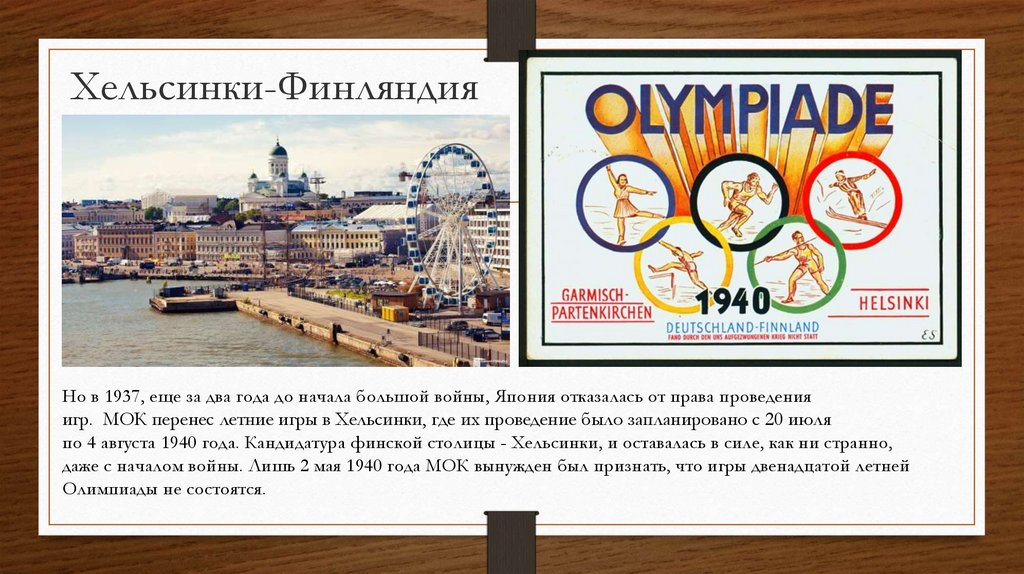 по 4 августа 1940 года. Кандидатура финской столицы - Хельсинки, и оставалась в силе, как ни странно,