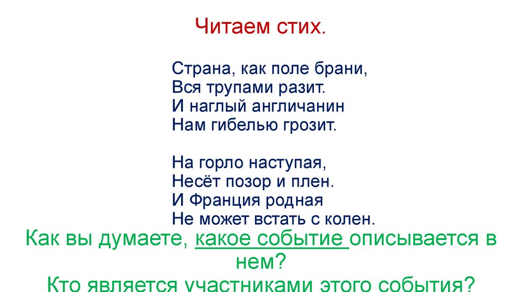 Читаем стих.Страна, как поле брани,