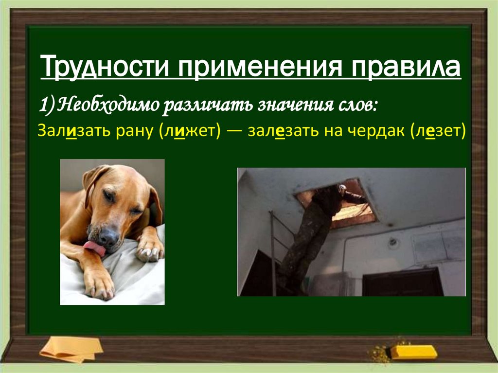 Зализать рану (лижет) — залезать на чердак (лезет)