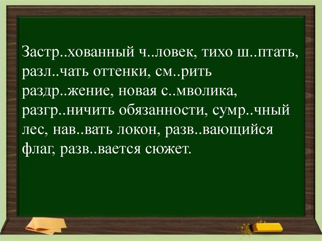 Застр..хованный ч..ловек, тихо ш..птать,разл..чать оттенки, см..рить