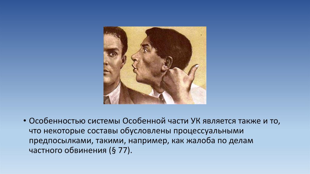 • Особенностью системы Особенной части УК является также и то,что некоторые составы обусловлены процессуальными