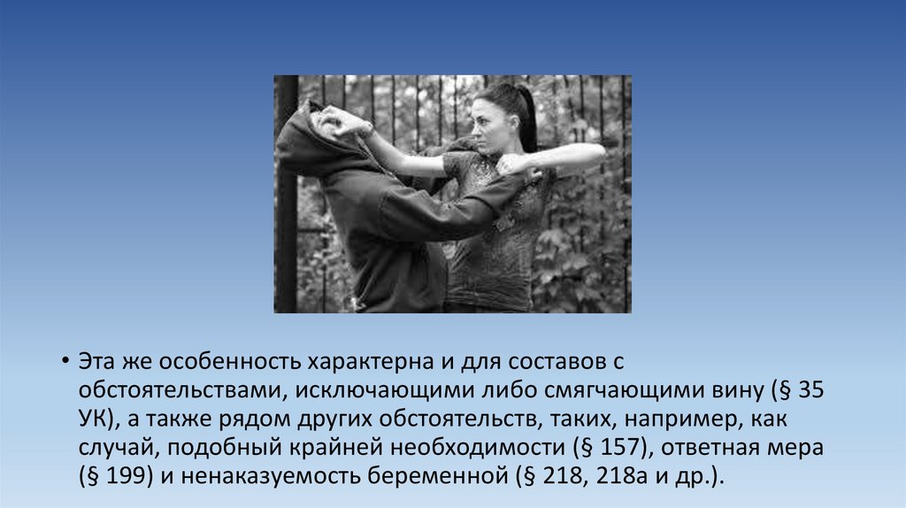 • Эта же особенность характерна и для составов собстоятельствами, исключающими либо смягчающими вину (§ 35