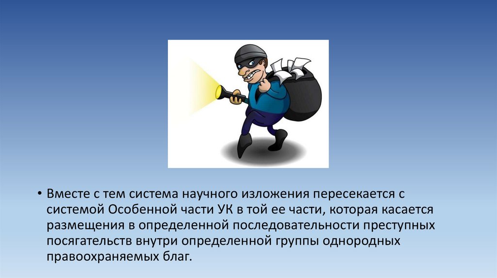 • Вместе с тем система научного изложения пересекается ссистемой Особенной части УК в той ее части, которая касается