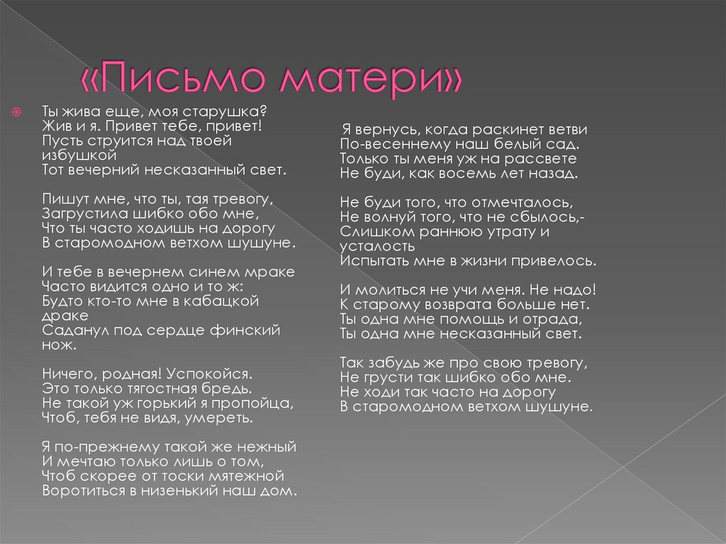 Ты жива еще, моя старушка?Жив и я. Привет тебе, привет!