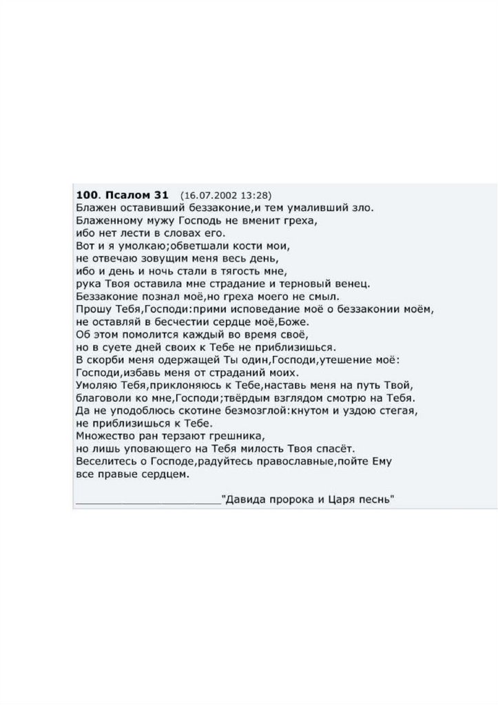 Псалом 31. Блажен оставивший беззаконие, и тем умаливший зло