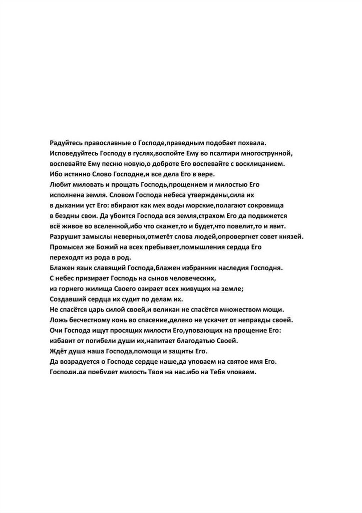 Псалом 32. Радуйтесь православные о Господе, праведным подобает похвала