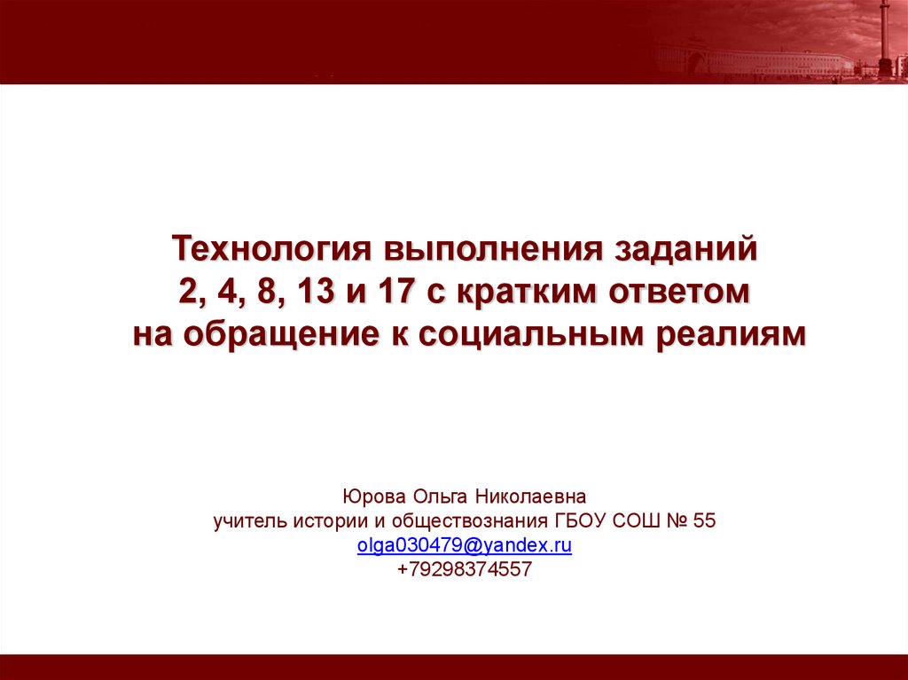 Технология выполнения заданий 2, 4, 8, 13 и 17 с кратким ответом на обращение к социальным реалиям