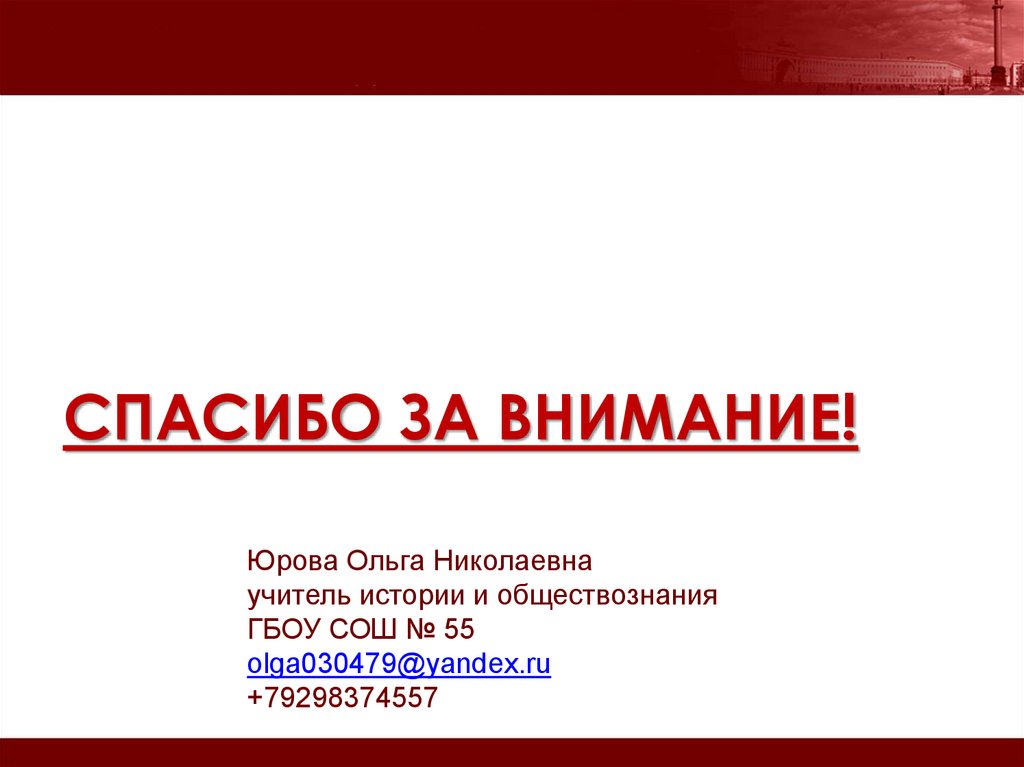 учитель истории и обществознания ГБОУ СОШ № 55