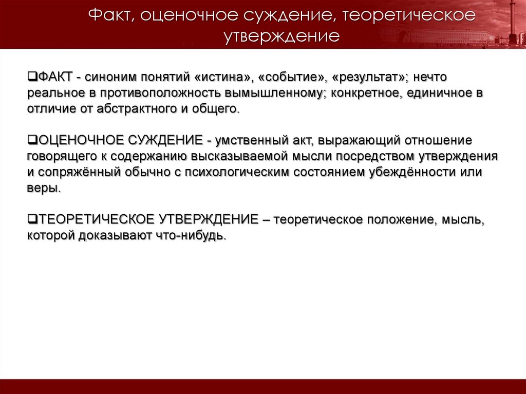 Факт, оценочное суждение, теоретическоеутверждение