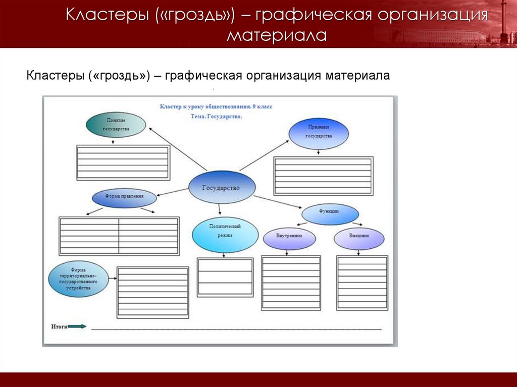 Кластеры («гроздь») – графическая организация материала