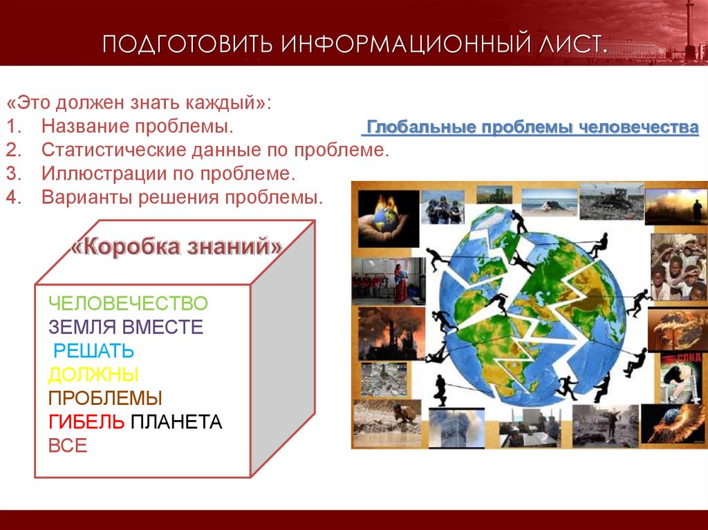 ПОДГОТОВИТЬ ИНФОРМАЦИОННЫЙ ЛИСТ.«Это должен знать каждый»: