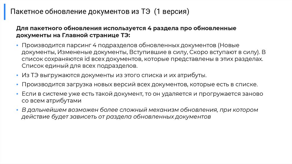Пакетное обновление документов из ТЭ (1 версия)Для пакетного обновления используется 4 раздела про обновленные
