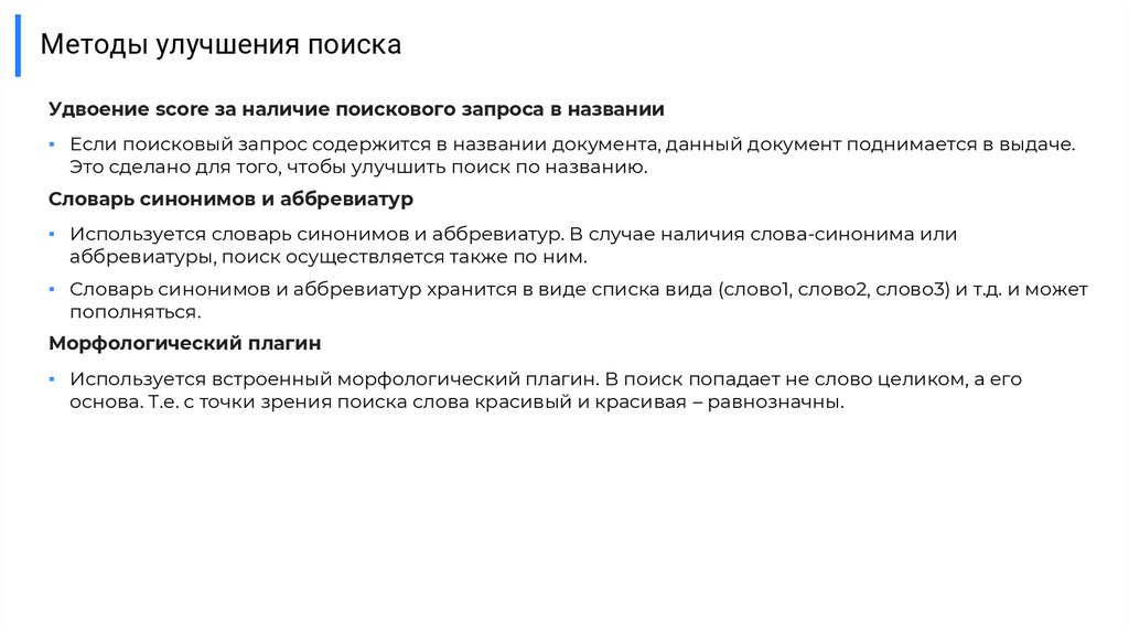Методы улучшения поискаУдвоение score за наличие поискового запроса в названии