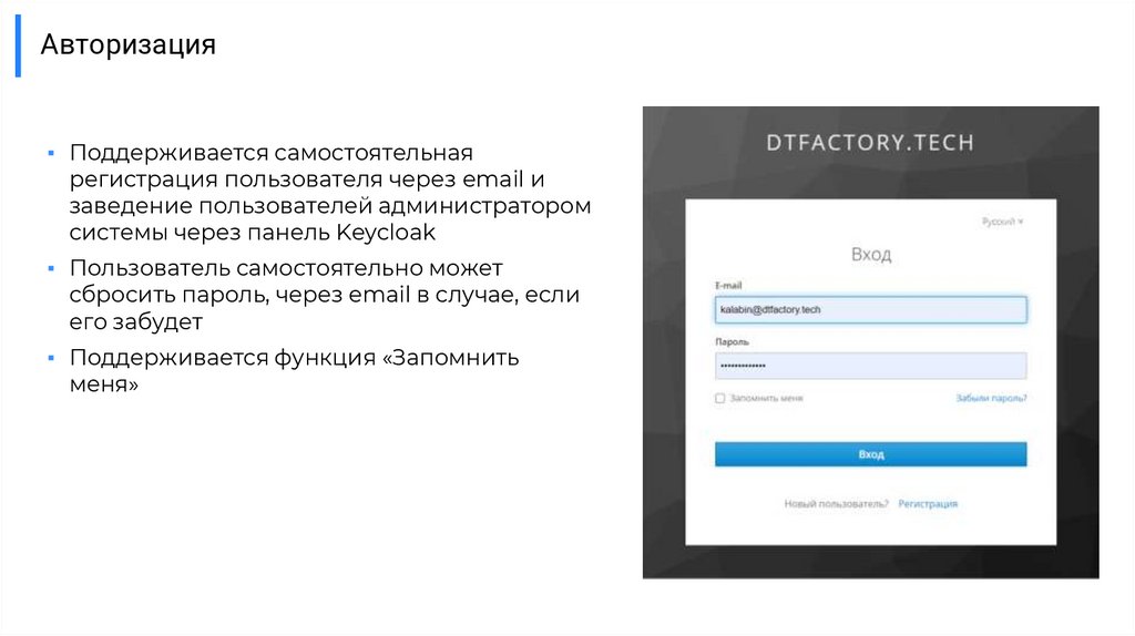 Авторизация▪ Поддерживается самостоятельная
