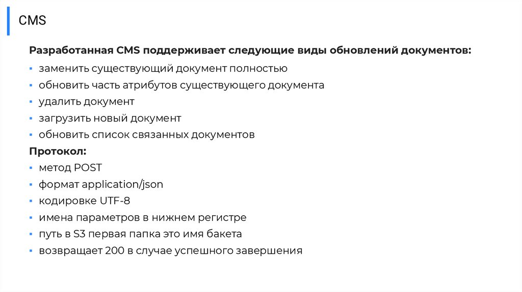 CMSРазработанная CMS поддерживает следующие виды обновлений документов: