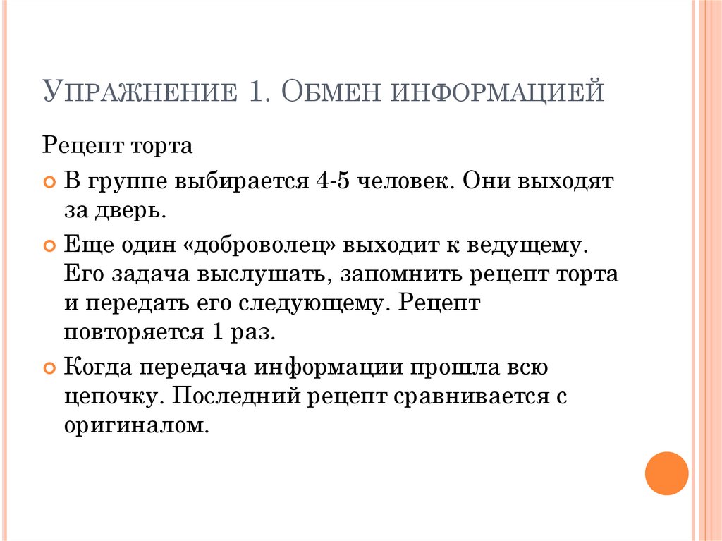 УПРАЖНЕНИЕ 1. ОБМЕН ИНФОРМАЦИЕЙРецепт торта