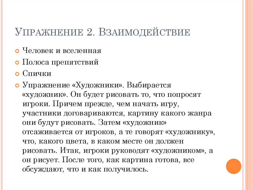 УПРАЖНЕНИЕ 2. ВЗАИМОДЕЙСТВИЕЧеловек и вселенная
