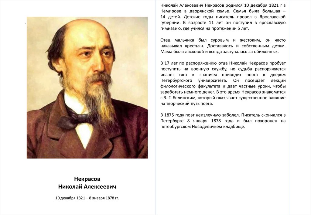 Николай Алексеевич Некрасов родился 10 декабря 1821 г вНемирове в дворянской семье. Семья была большая –