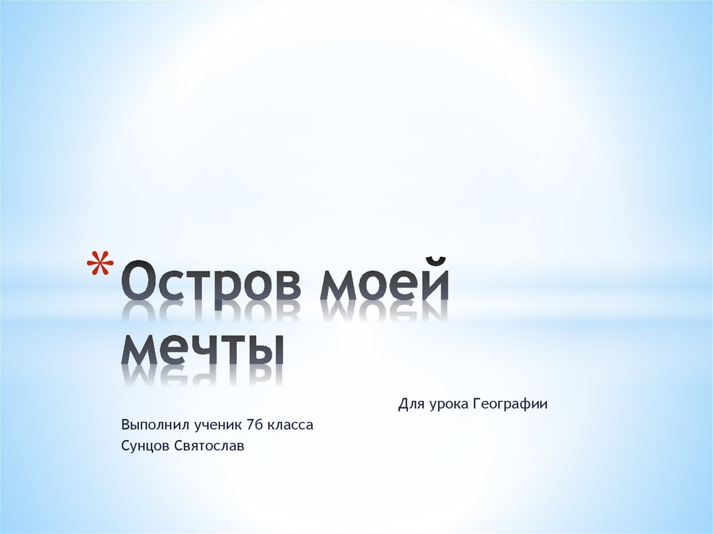 * Так как это Остров МОЕЙ мечты, то будуопираться на свои предпочтения. Я выбрал