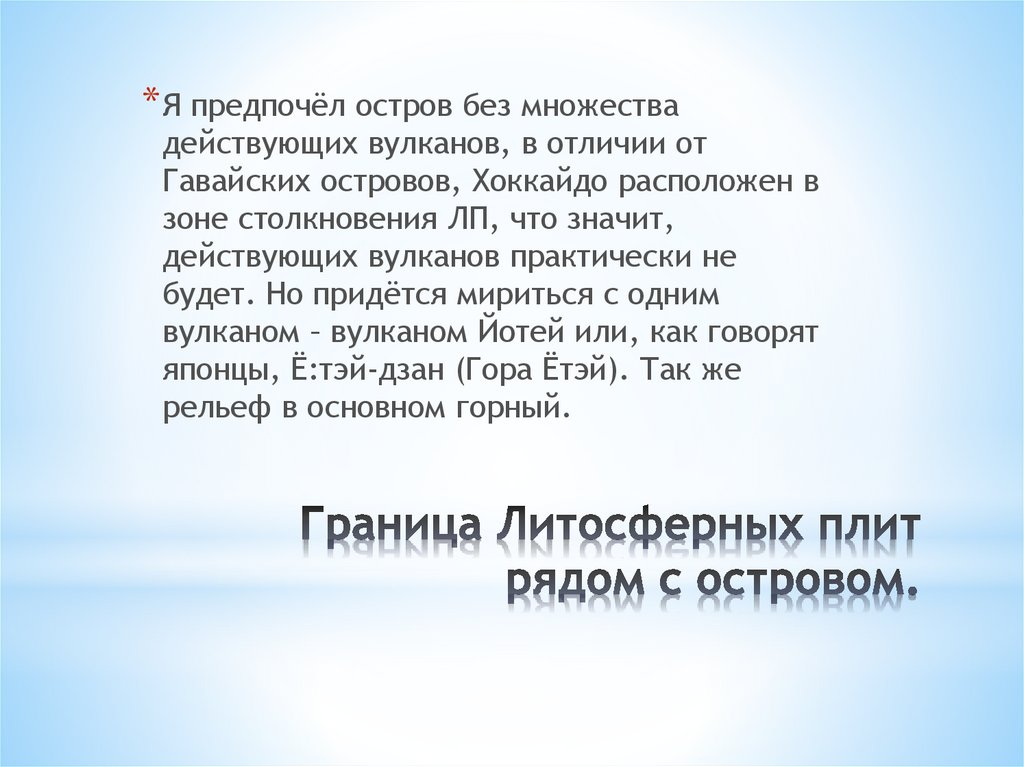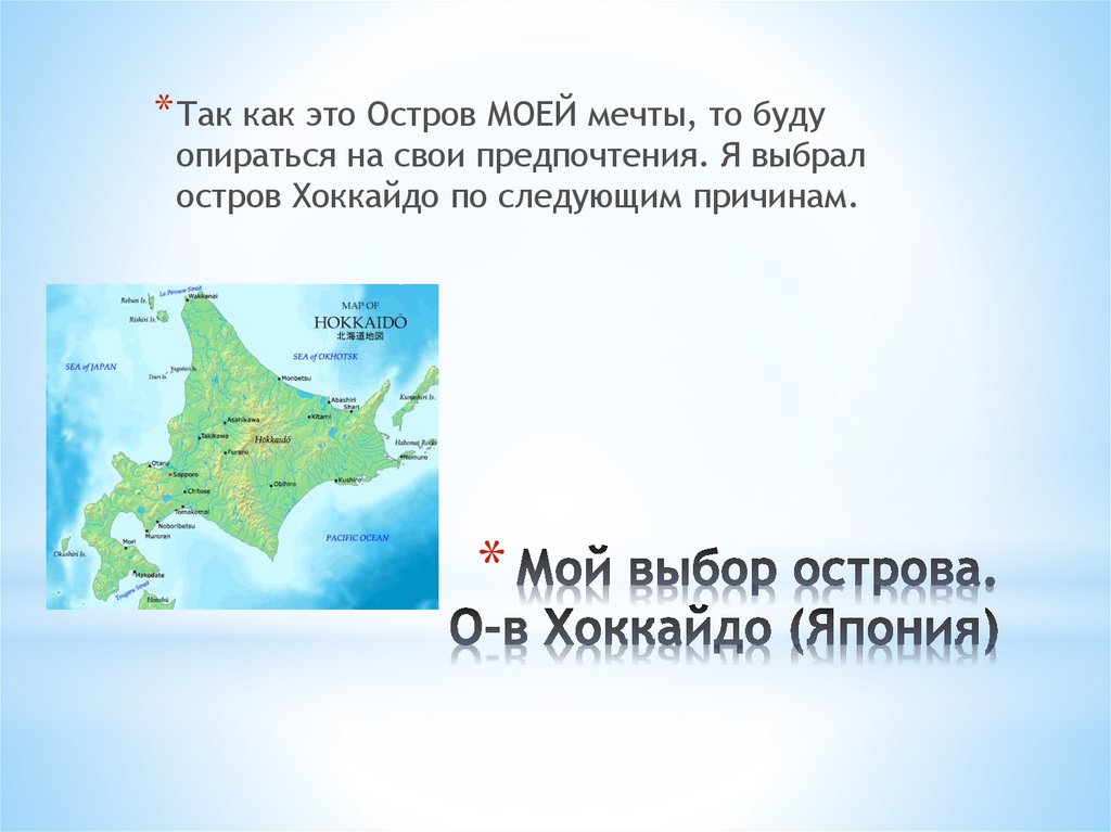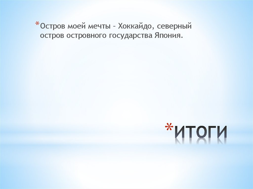 * Остров моей мечты – Хоккайдо, северныйостров островного государства Япония.