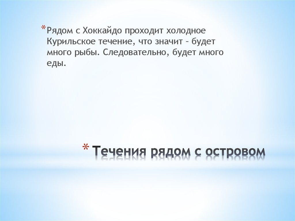 * Рядом с Хоккайдо проходит холодноеКурильское течение, что значит – будет
