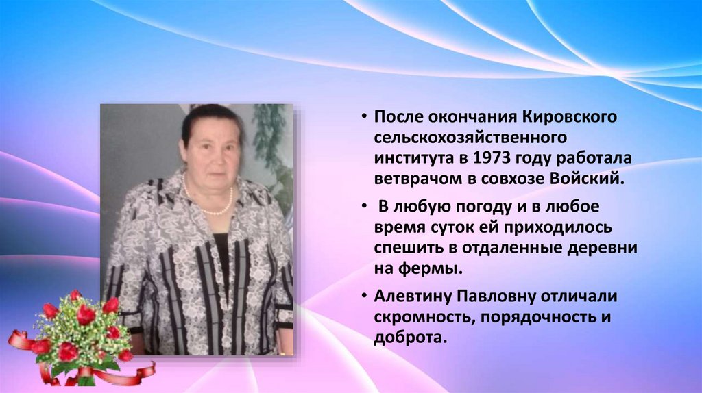 • Алевтину Павловну отличали