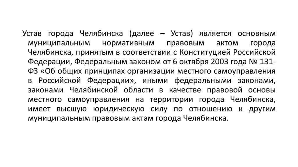 муниципальным правовым актам города Челябинска.