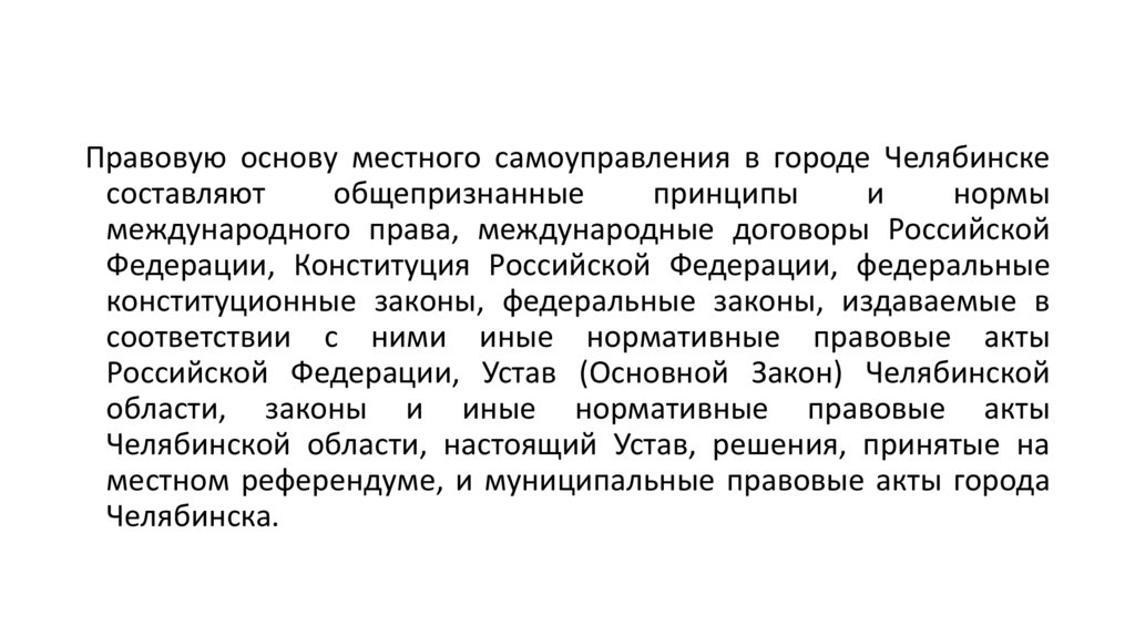 Правовую основу местного самоуправления в городе Челябинскесоставляют