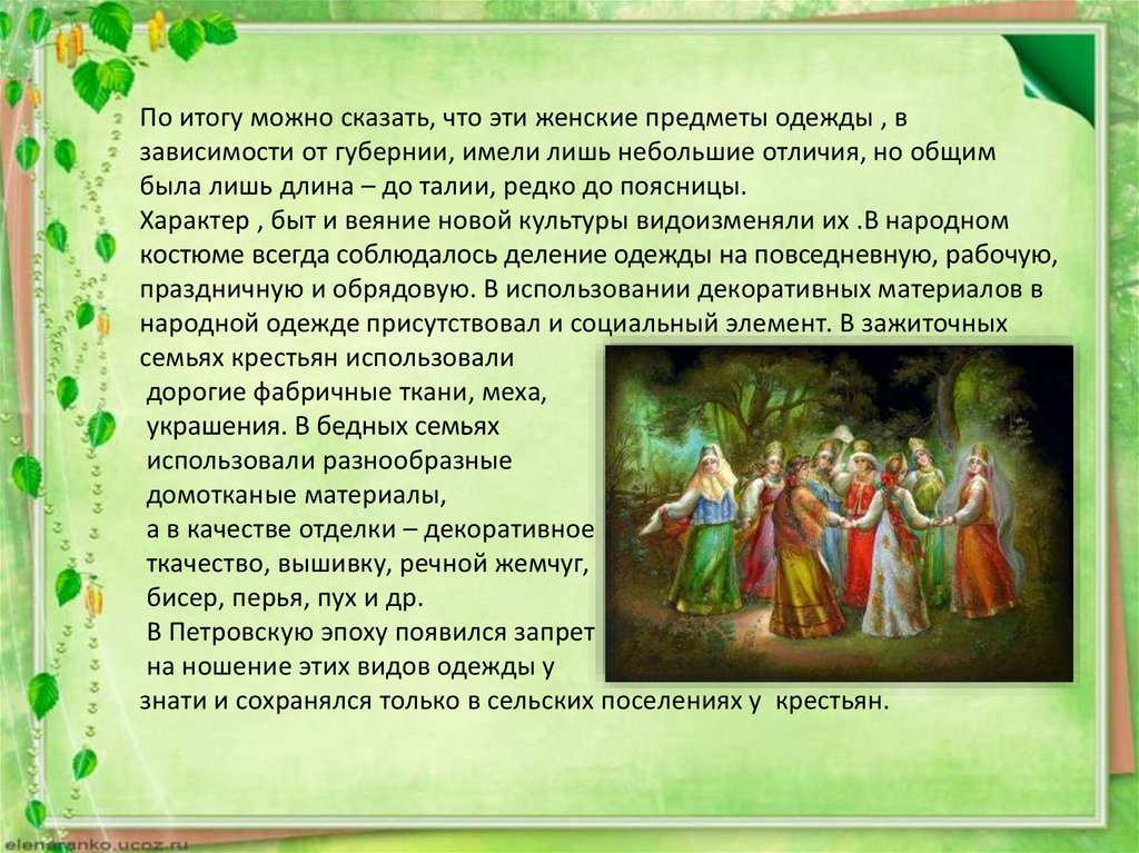 По итогу можно сказать, что эти женские предметы одежды , взависимости от губернии, имели лишь небольшие отличия, но общим