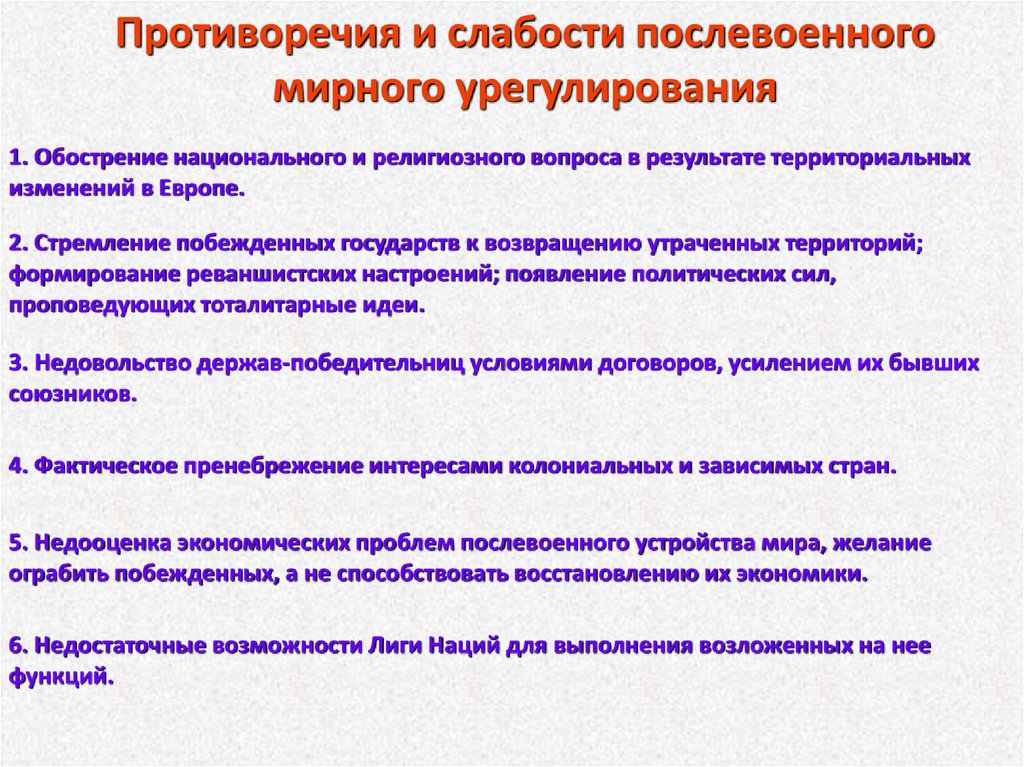 Противоречия и слабости послевоенногомирного урегулирования