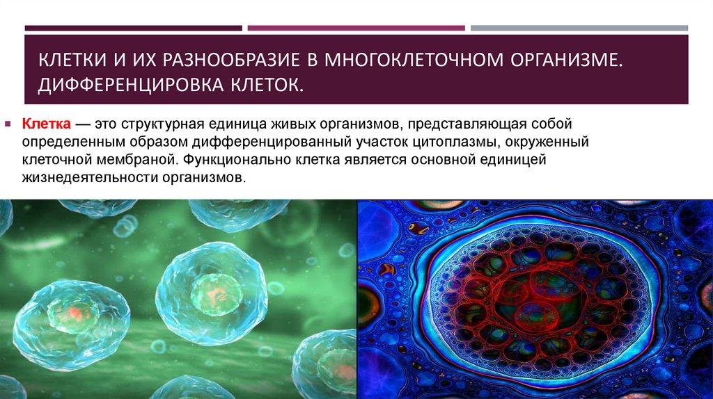 КЛЕТКИ И ИХ РАЗНООБРАЗИЕ В МНОГОКЛЕТОЧНОМ ОРГАНИЗМЕ.ДИФФЕРЕНЦИРОВКА КЛЕТОК.