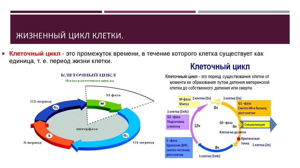 ЖИЗНЕННЫЙ ЦИКЛ КЛЕТКИ.Клеточный цикл - это промежуток времени, в течение которого клетка существует как
