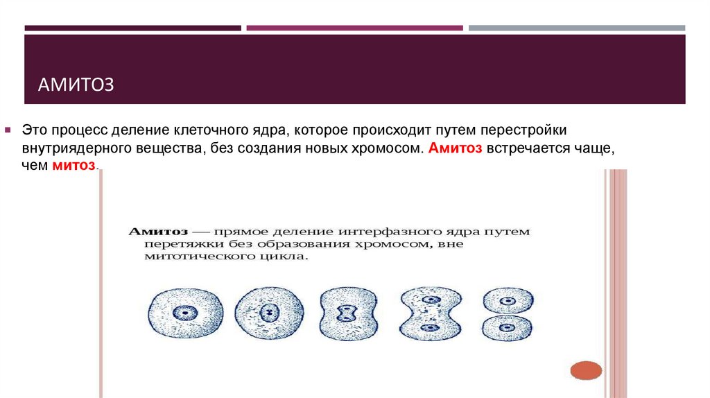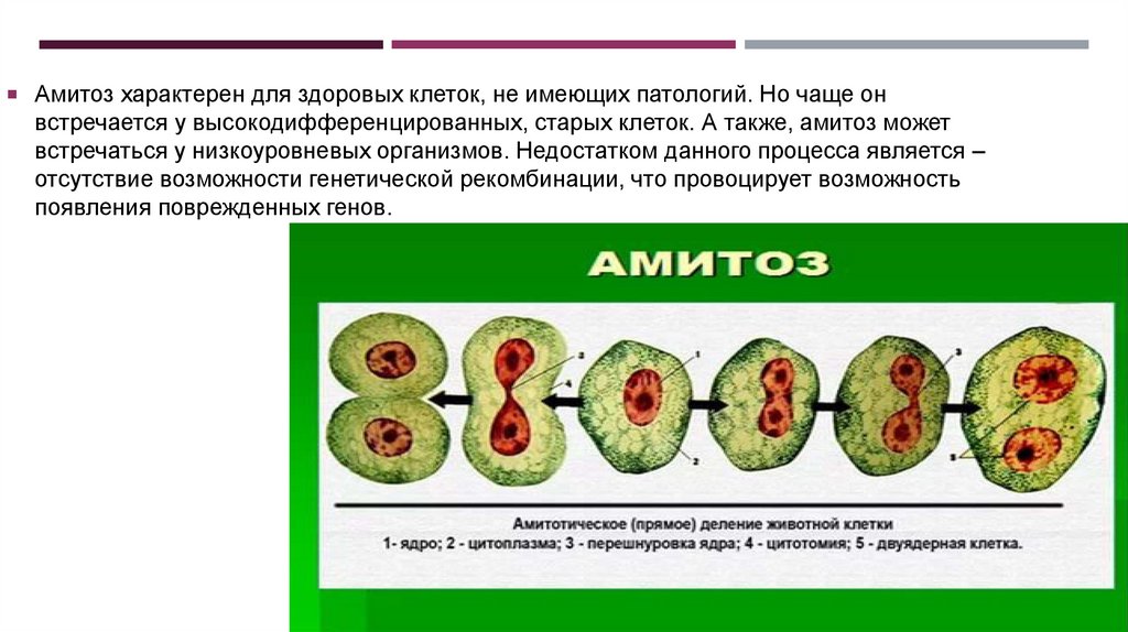 внутриядерного вещества, без создания новых хромосом. Амитоз встречается чаще,