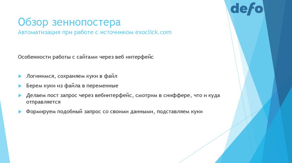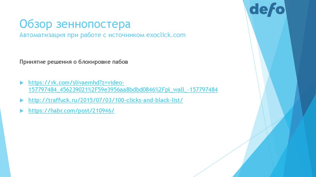 Обзор зеннопостераАвтоматизация при работе с источником exoclick.com