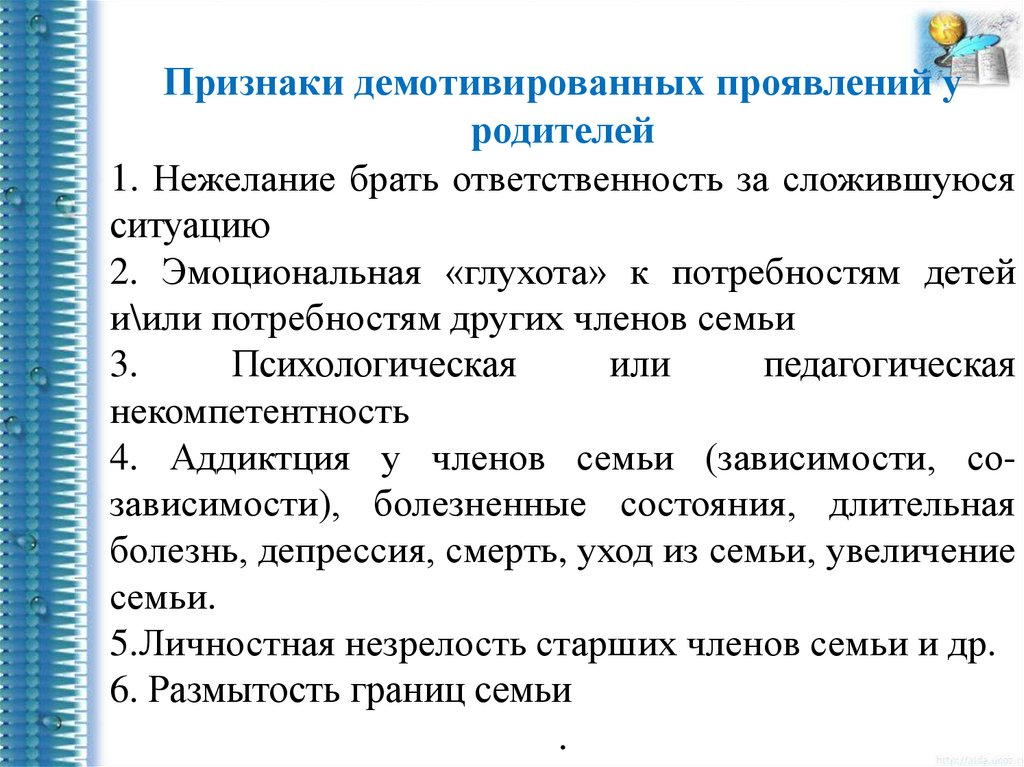 Признаки демотивированных проявлений уродителей