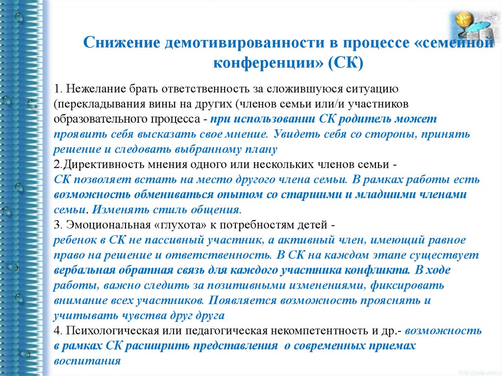 Снижение демотивированности в процессе «семейнойконференции» (СК)