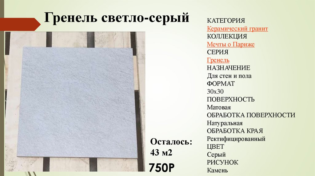 Ассортимент плитки и керамогранита. Гренель светло-серый
