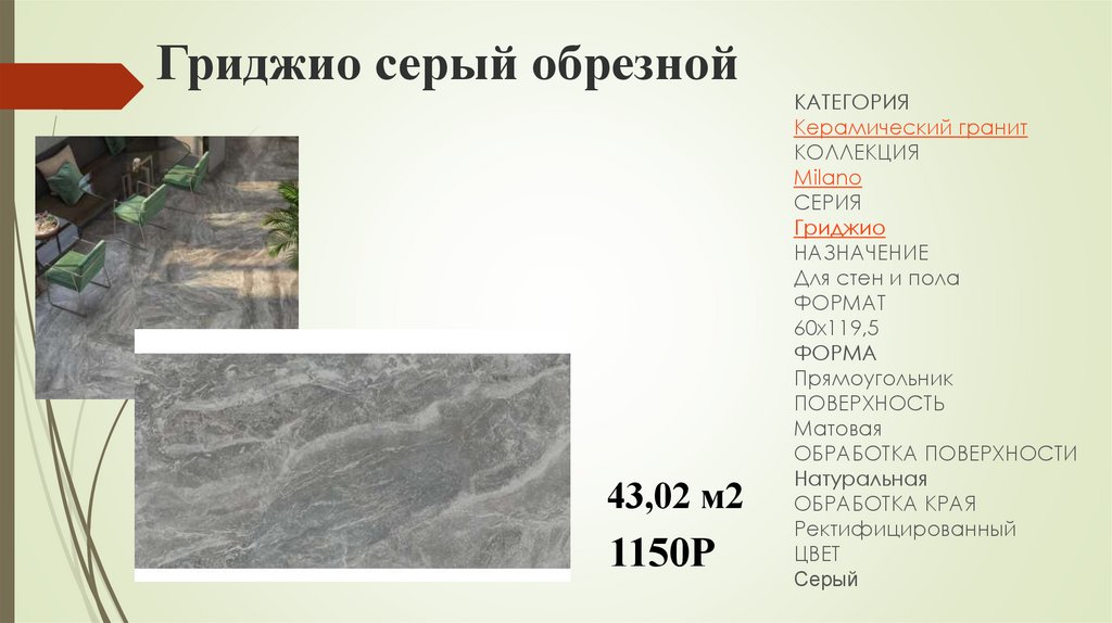 Гриджио серый обрезной43,02 м2