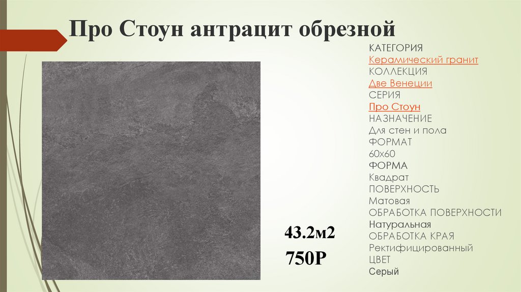 Про Стоун антрацит обрезной43.2м2