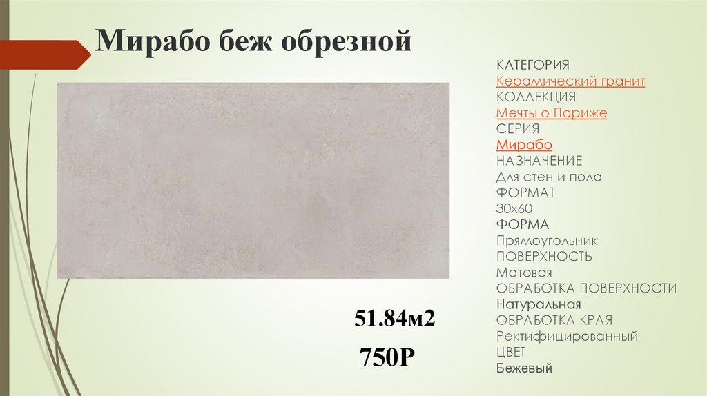 Мирабо беж обрезной51.84м2