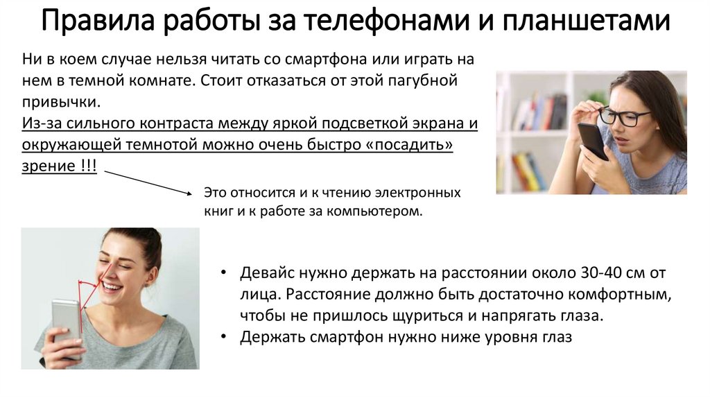 Правила работы за телефонами и планшетамиНи в коем случае нельзя читать со смартфона или играть на
