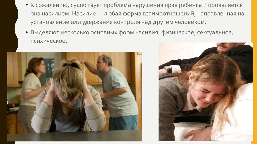 • Выделяют несколько основных форм насилия: физическое, сексуальное,