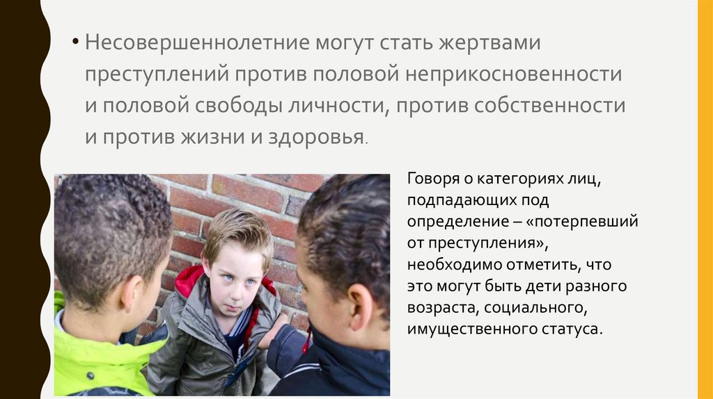• Несовершеннолетние могут стать жертвамипреступлений против половой неприкосновенности