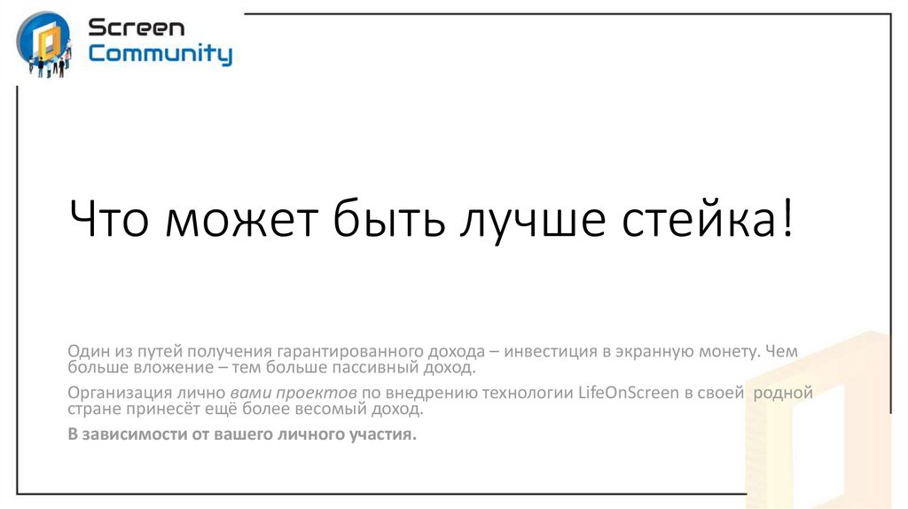Что может быть лучше стейка!Один из путей получения гарантированного дохода – инвестиция в экранную монету. Чем