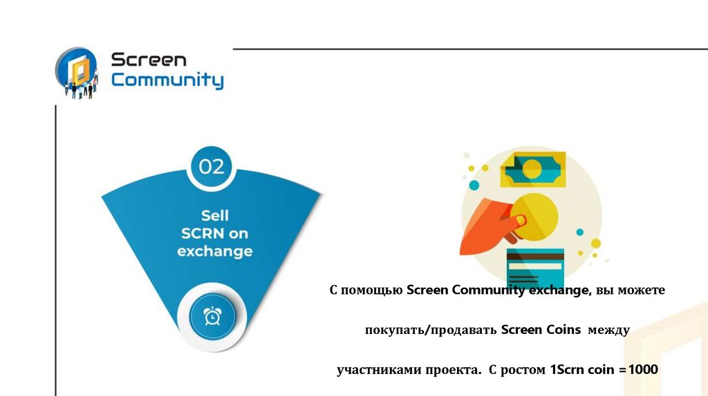С помощью Screen Community exchange, вы можетепокупать/продавать Screen Coins между